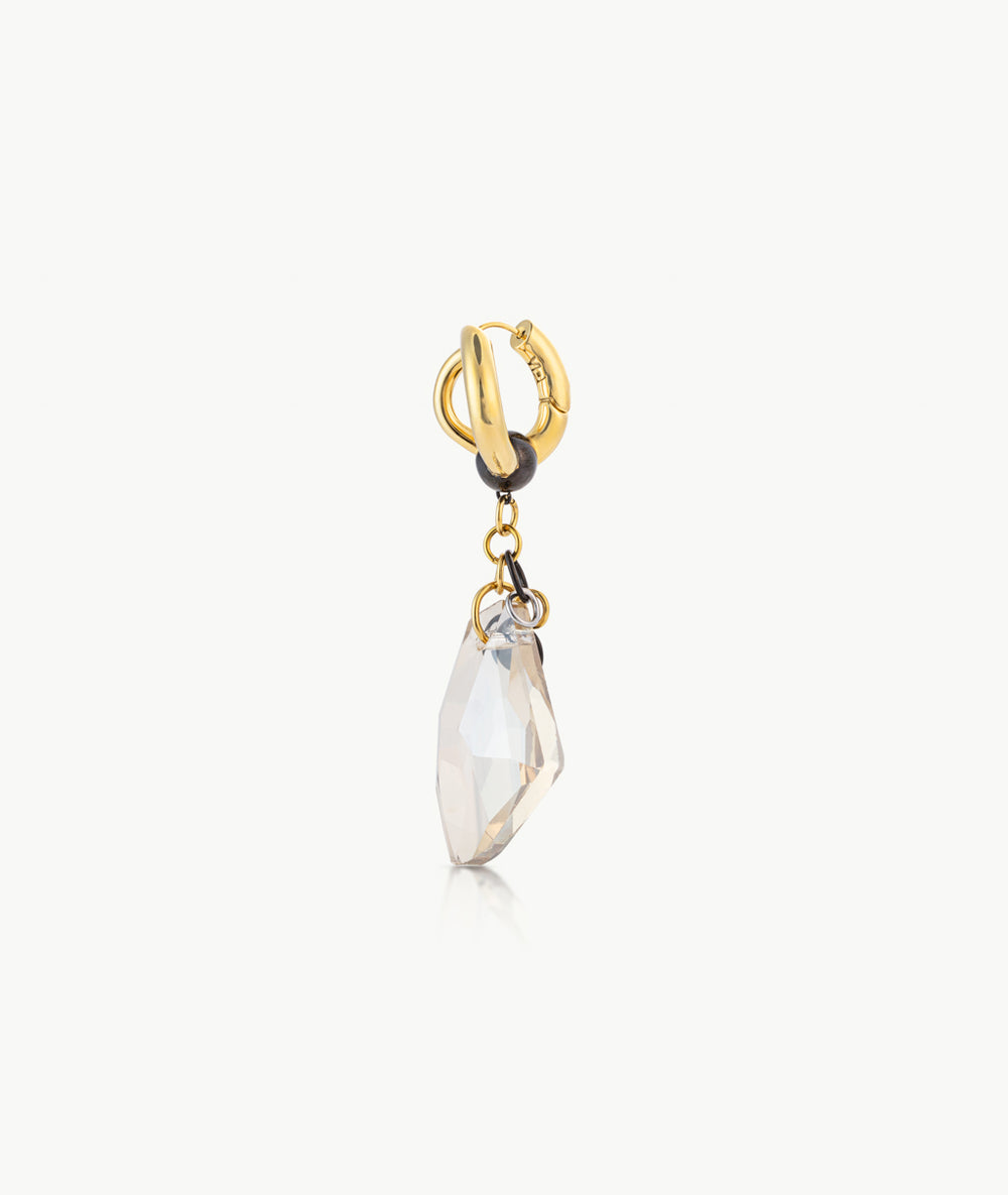 two-tone gold and black dangling earring with brown crystal, stainless steel pierced ear jewelry, comfortable, water resistant, for men and women, anysex. one size. sold individually.
