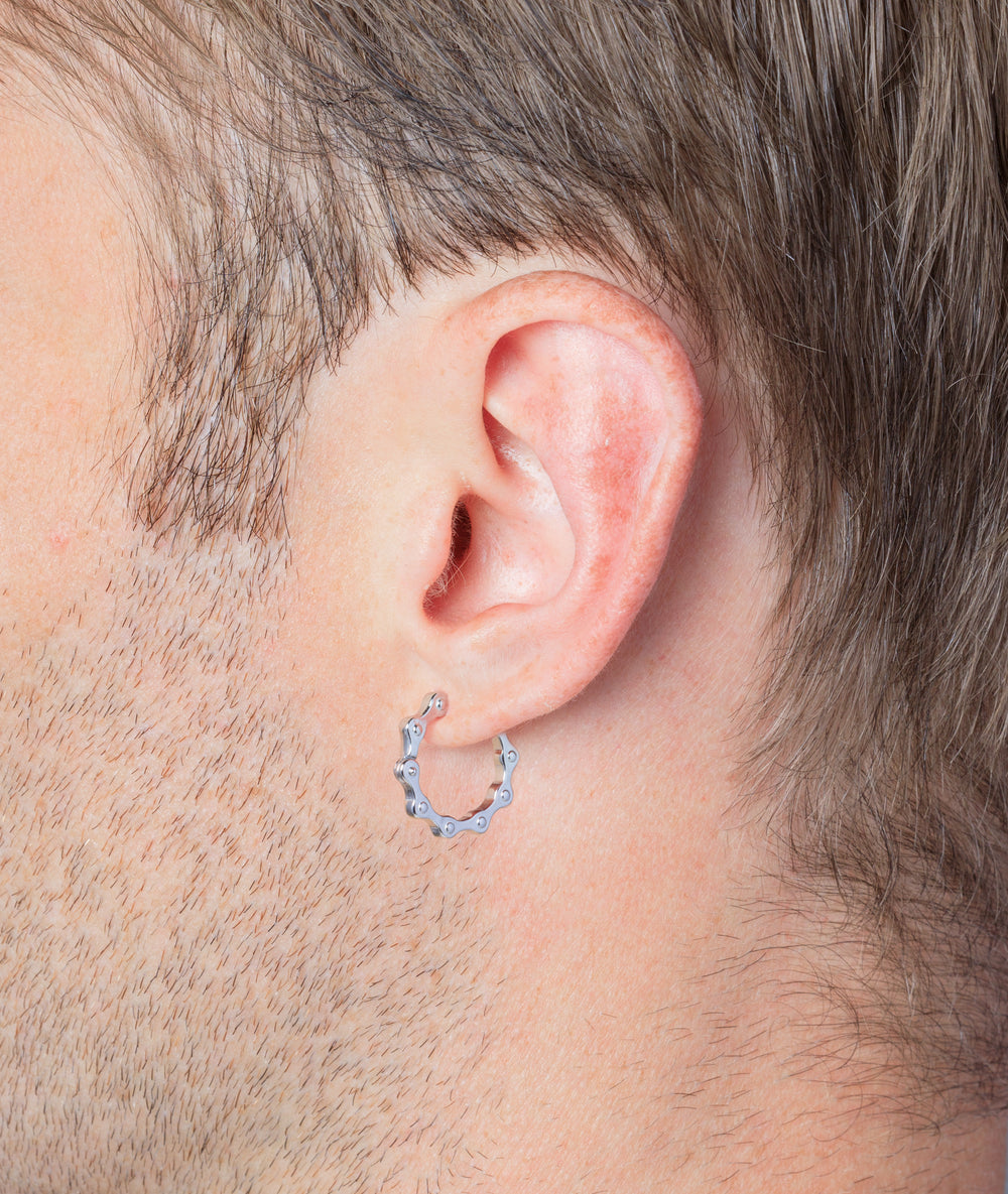silver hoop earring , stainless steel, pierced ear jewelry, comfortable, water resistant, for men and women, any sex. one size. sold individually.