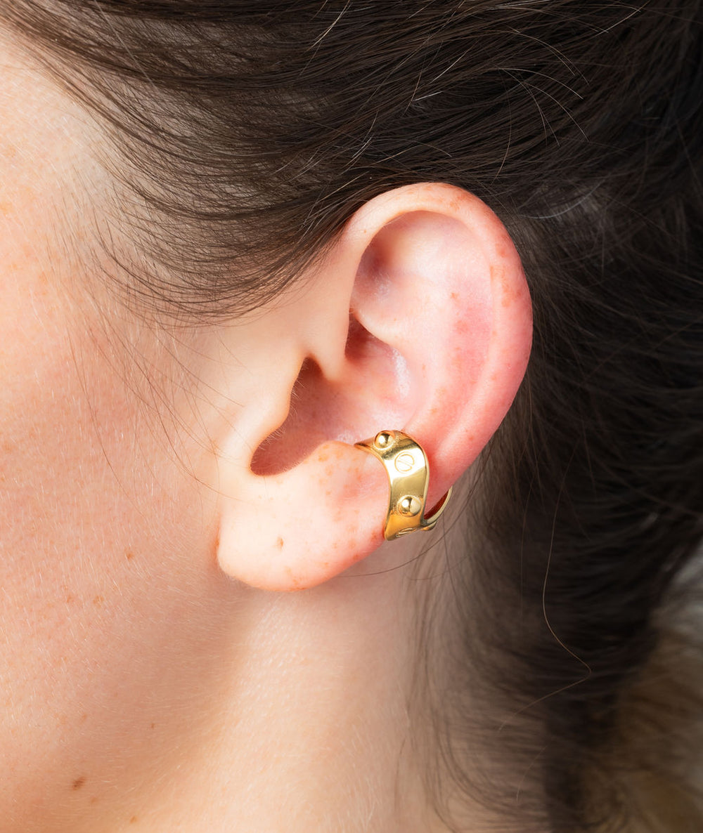 wavy ear cuff, studded with gold-plated stainless steel motifs, non-pierced ear jewellery, comfortable, water-resistant, for men and women, anysex. one size fits all. sold individually.