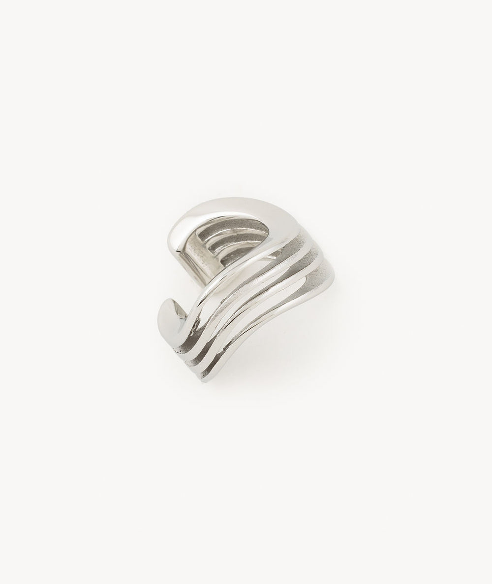 triple silver-plated corrugated ear cuff in stainless steel, non-pierced ear jewellery, comfortable, water-resistant, for men and women, anysex. one size fits all. sold individually