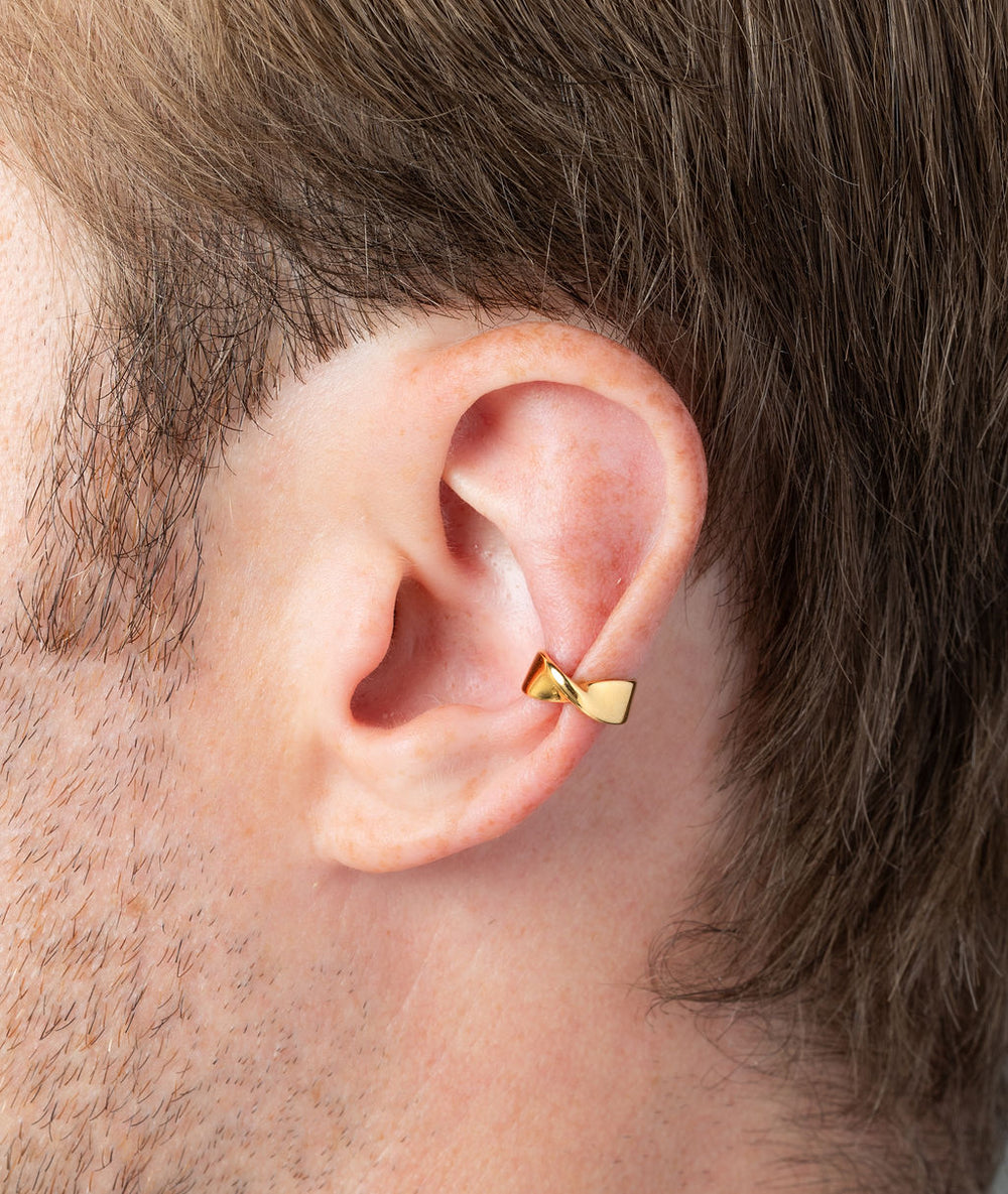 flat twisted ear cuff in gold-plated stainless steel, non-pierced ear jewellery, comfortable, water-resistant, for men and women, anysex. one size fits all. sold individually.