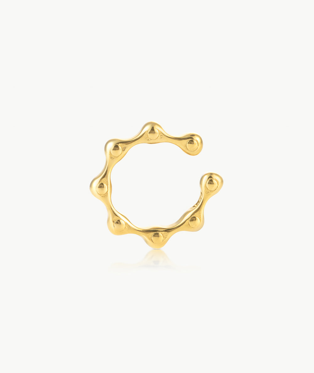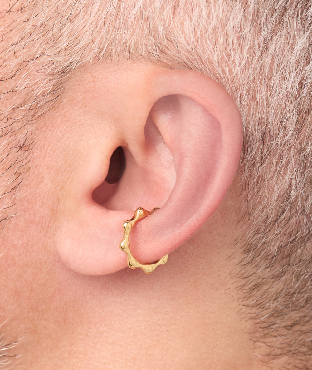 gold-plated stainless steel round ear cuff, non-pierced ear jewelry, comfortable, water-resistant, for men and women, any sex. one size. sold individually.