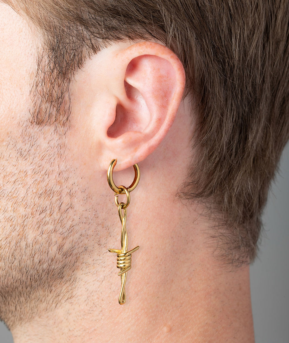 Boucle d'oreille pendante fil barbelé dorée Berlin G