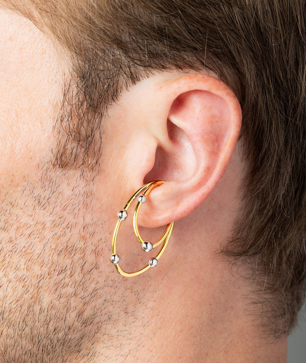 ear cuff ovale en acier inoxydable bicolore, bijou d’oreille sans perçage, bijou confortable, bijou résistant à l’eau, earcuff pour homme, earcuff pour femme, earcuff unisexe, taille unique, vendu à l’unité.