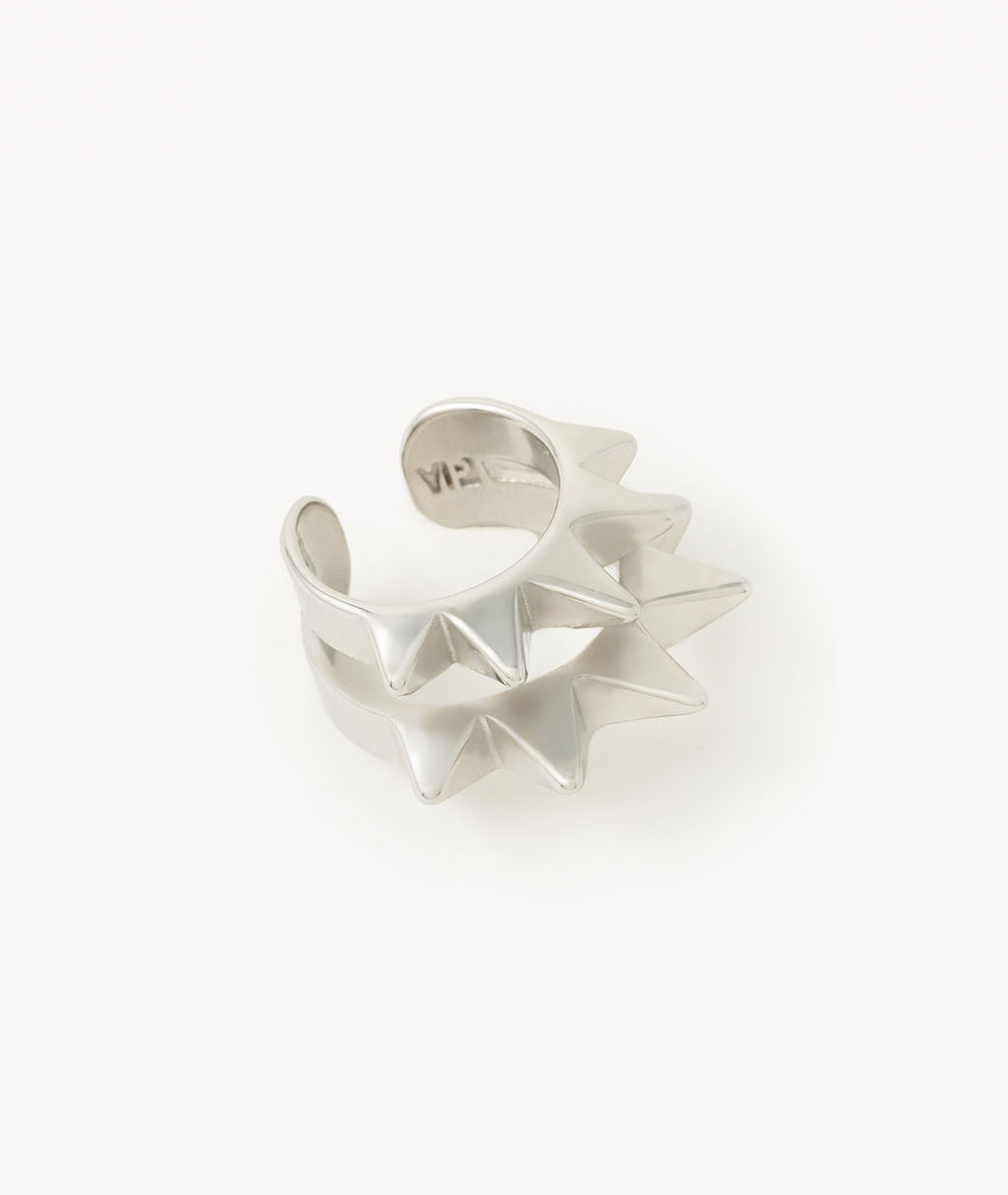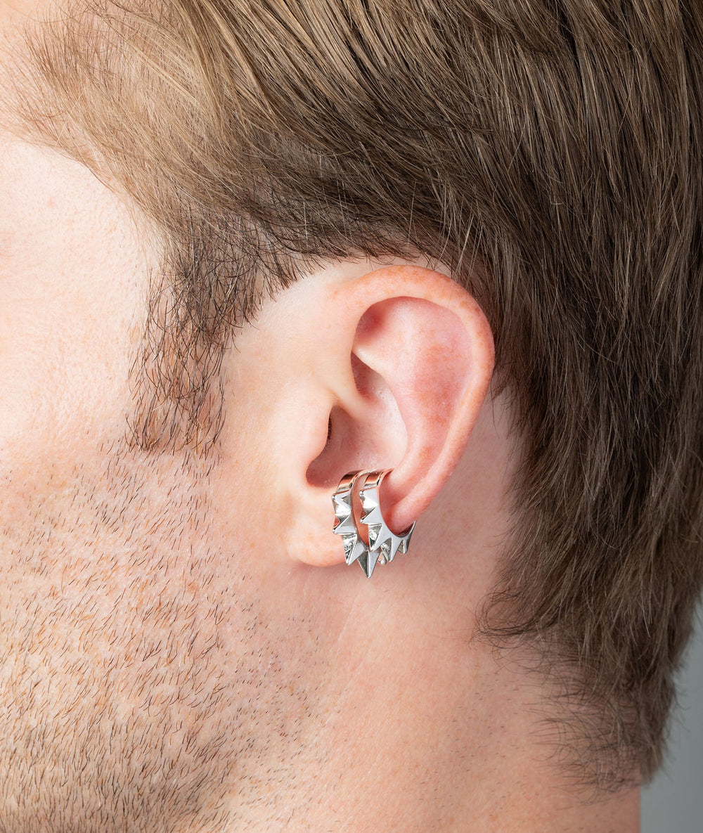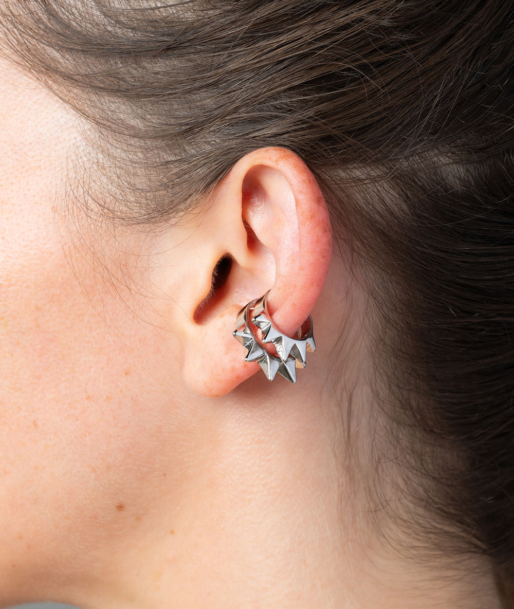 ear cuff double avec piques en acier inoxydable argenté, bijou d’oreille sans perçage, bijou confortable, bijou résistant à l’eau, earcuff pour homme, earcuff pour femme, earcuff unisexe, taille unique, vendu à l’unité.