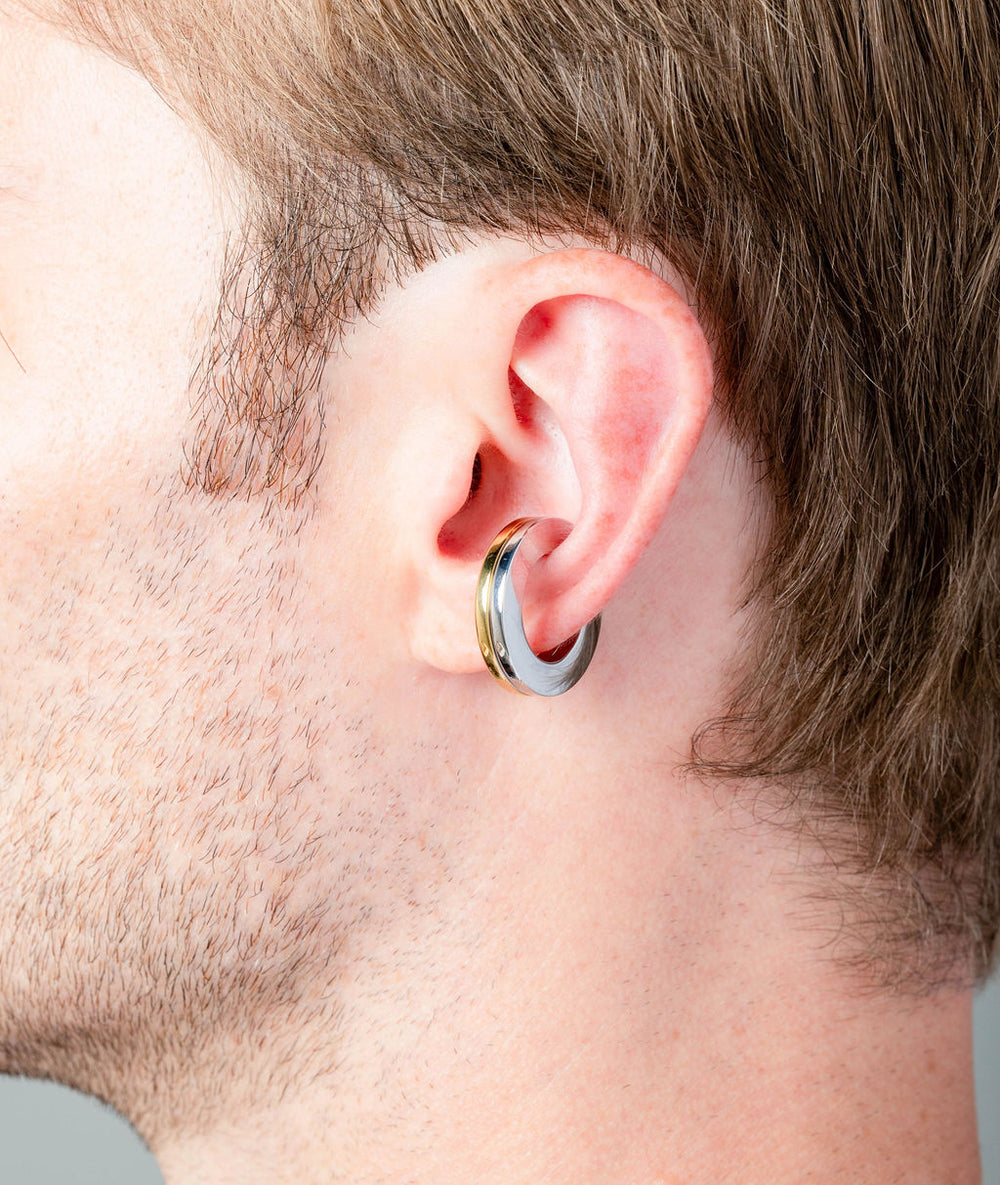 ear cuff rond en acier inoxydable bicolore, bijou d’oreille sans perçage, bijou confortable, bijou résistant à l’eau, earcuff pour homme, earcuff pour femme, earcuff unisexe, taille unique, vendu à l’unité.