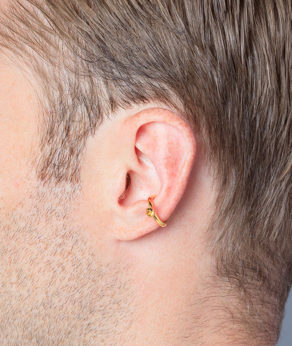 ear cuff rond en acier inoxydable doré avec oxyde de zirconium marron, bijou d’oreille sans perçage, bijou confortable, bijou résistant à l’eau, earcuff pour homme, earcuff pour femme, earcuff unisexe, taille unique, vendu à l’unité.
